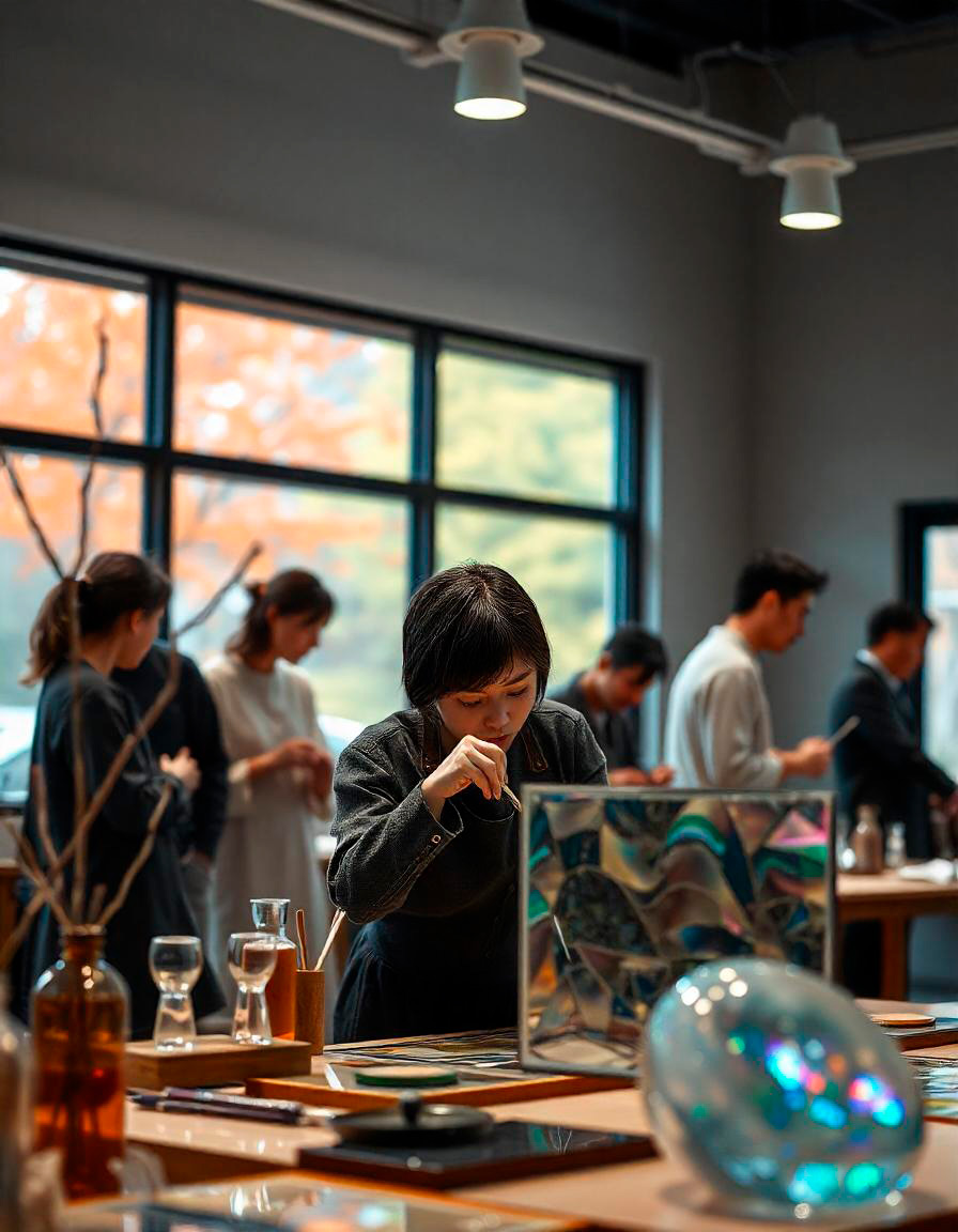 Explore sua criatividade em nossos cursos e workshops, receba consultoria especializada para criar arte em vidro